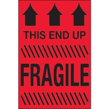 4 x 6" - "This End Up - Fragile" (Fluorescent Red) Labels