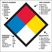 10 3/4 x 10 3/4" - "Health Hazard Fire Hazard Specific Hazard Reactivity"